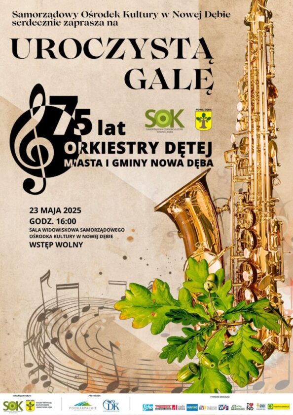 W imieniu organizatora, Samorządowego Ośrodka Kultury w Nowej Dębie, zapraszamy wszystkich mieszkańców na wyjątkowy koncert z okazji 75-lecia Orkiestry Dętej Miasta i Gminy Nowa Dęba.
