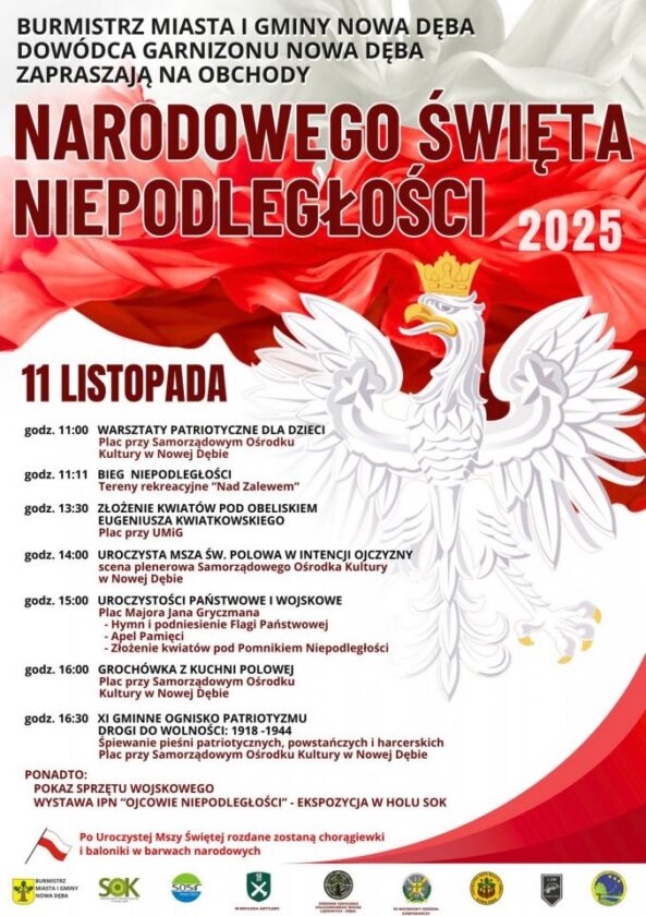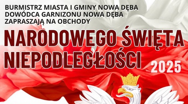 Burmistrz Miasta i Gminy Nowa Dęba oraz Dowódca Garnizonu Nowa Dęba zapraszają na obchody Narodowego Święta Niepodległości 11 listopada 2025 r.