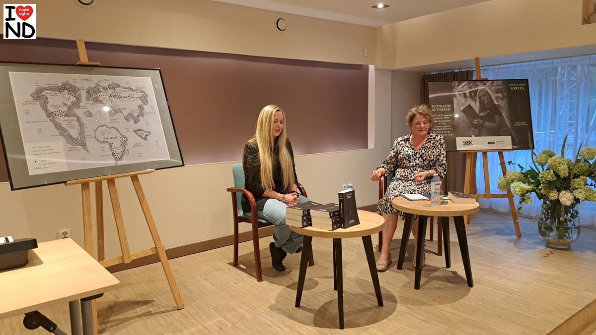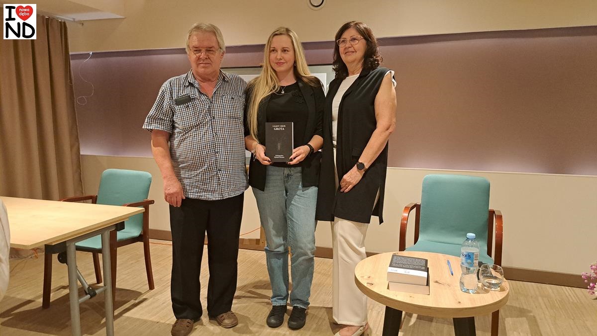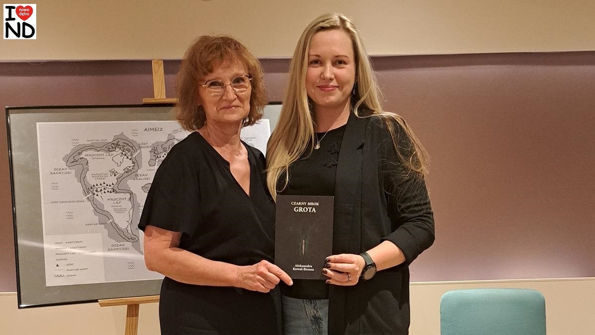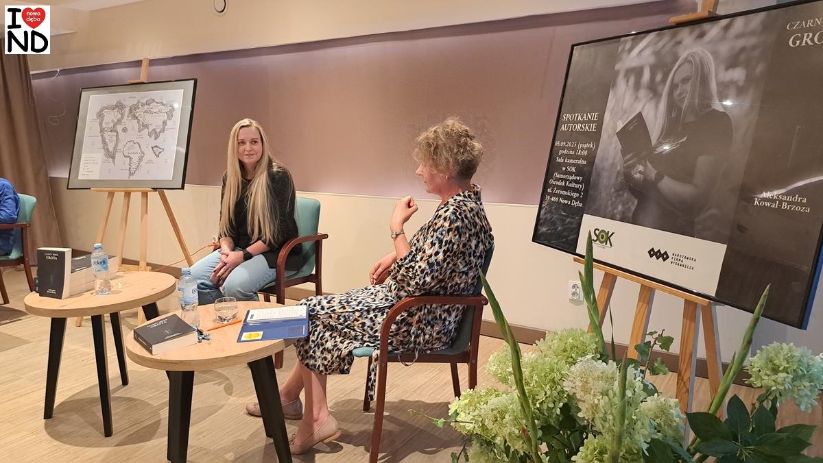 W piątek 5 września 2025 r. w sali kameralnej Samorządowego Ośrodka Kultury w Nowej Dębie odbyło się spotkanie autorskie z Nowodębianką Aleksandrą Kowal-Brzozą, której powieść „Czarny Mrok. Grota” ukazała się niedawno drukiem.