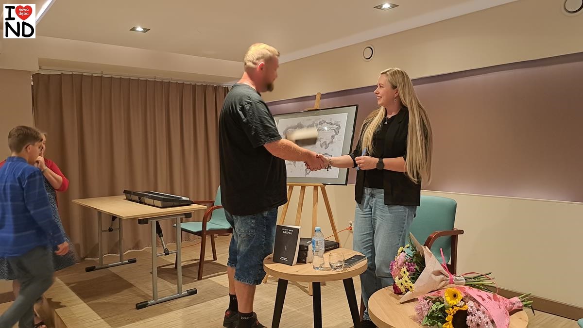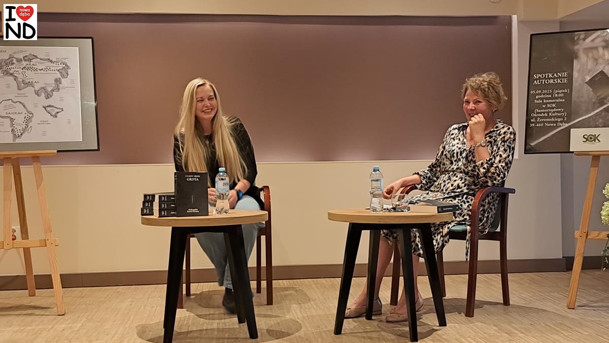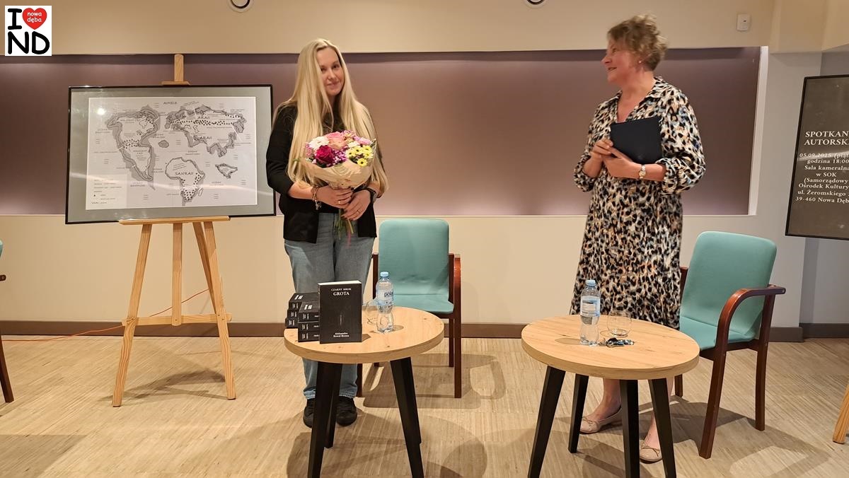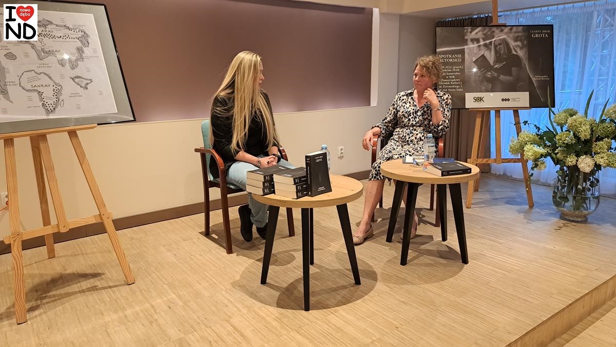 W piątek 5 września 2025 r. w sali kameralnej Samorządowego Ośrodka Kultury w Nowej Dębie odbyło się spotkanie autorskie z Nowodębianką Aleksandrą Kowal-Brzozą, której powieść „Czarny Mrok. Grota” ukazała się niedawno drukiem.