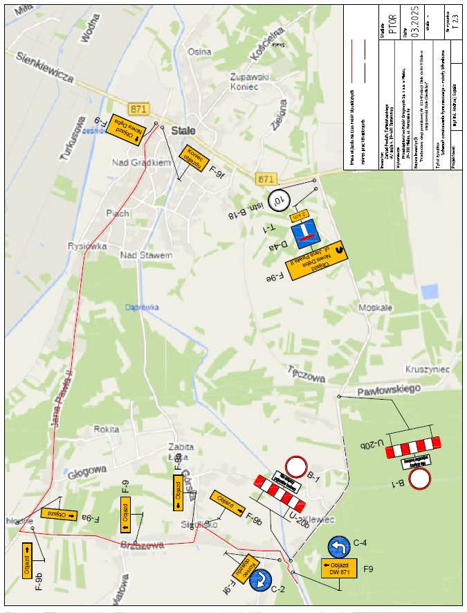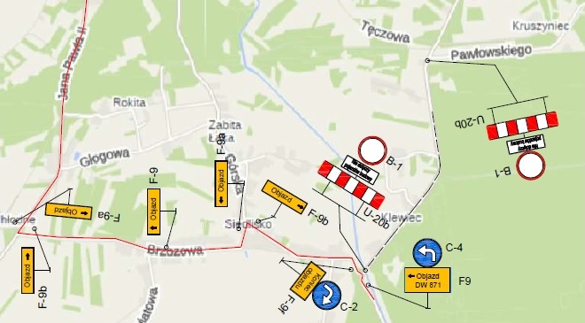 Zamknięty zostanie odcinek drogi nr 1114R pomiędzy Siedliskiem (Stale) a ul. Pawłowskiego (Stale). Jadąc od strony Nowej Dęby w Siedlisku należy skręcić w lewo, jechać ulicą Brzozową, z której skręcić w prawo w ul. Jana Pawła II i dalej prosto w kierunku drogi 871 zgodnie z przygotowanym oznaczeniem.